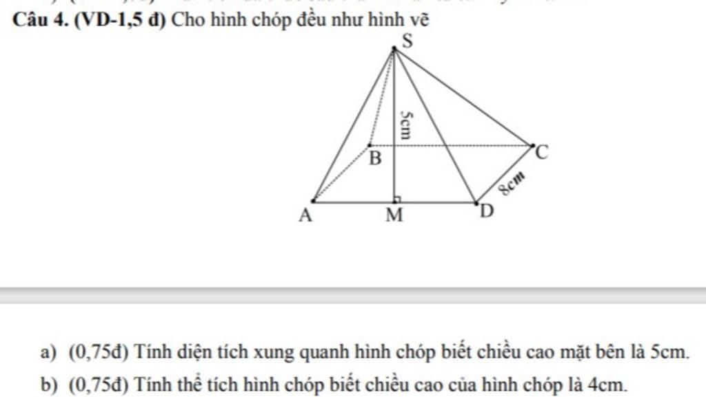 b) (0,75đ) Tính thể tích hình chóp biết chiều cao của hình chóp là 4cm