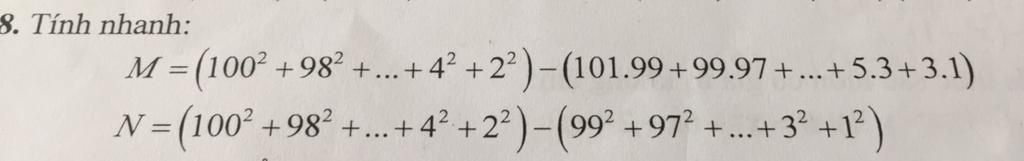` M=(100^2+98^2+...+2^2)-(101.99+99.97+...+3.1) `
