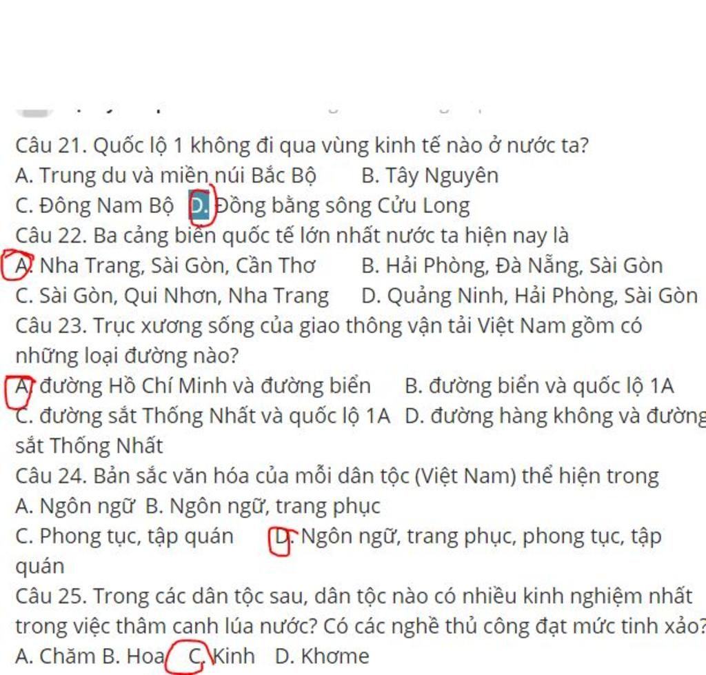 Câu 21. Quốc lộ 1 không đi qua vùng kinh tế nào ở nước ta?