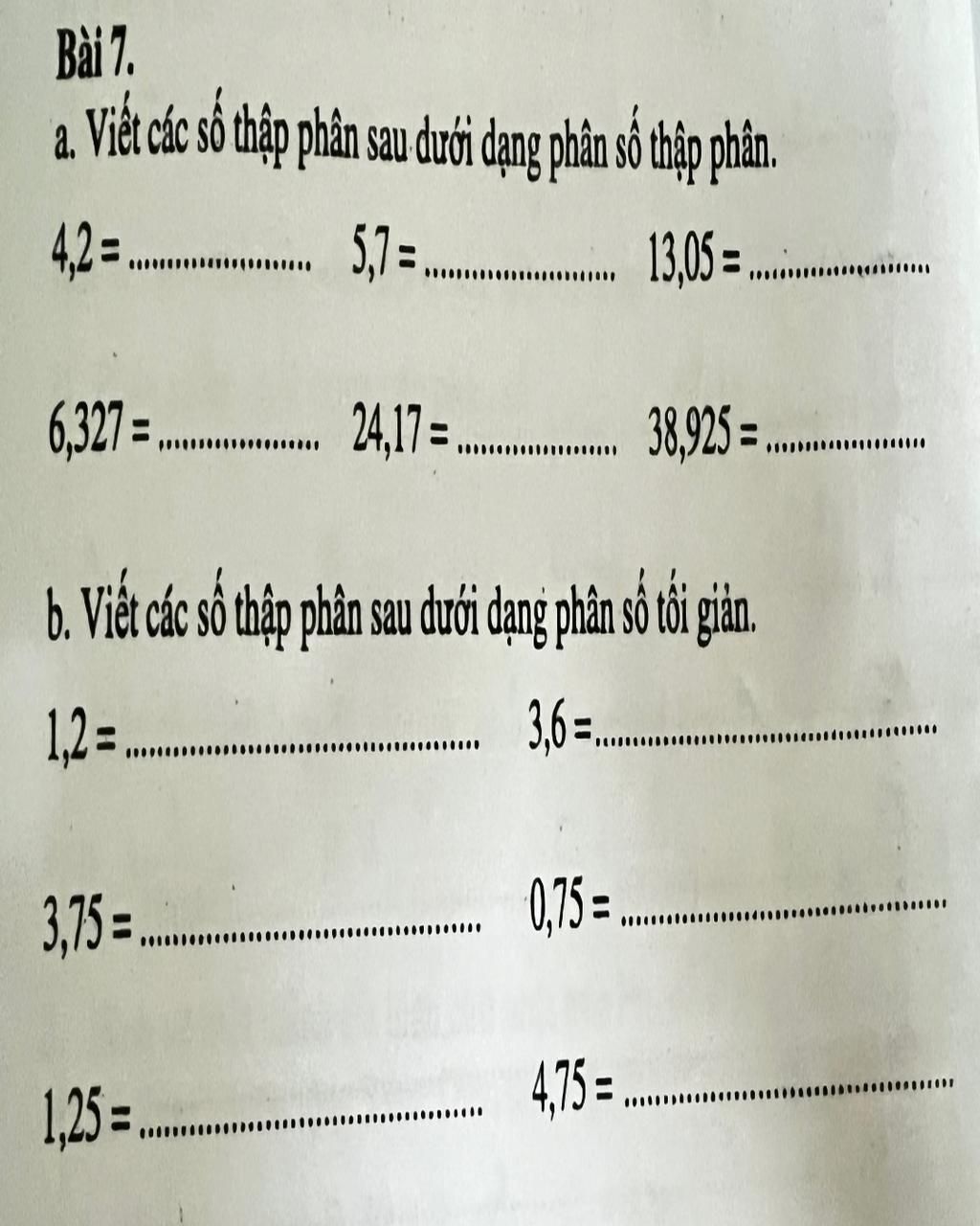 b) `1,2` `=` `(12)/(10)` `=` `(6)/(5)` ; `3,6` `=` `(36)/(10)` `=` `(18)/(5)` ; `3,75` `=` `(375)/(100)` `=` `(15)/(4)`