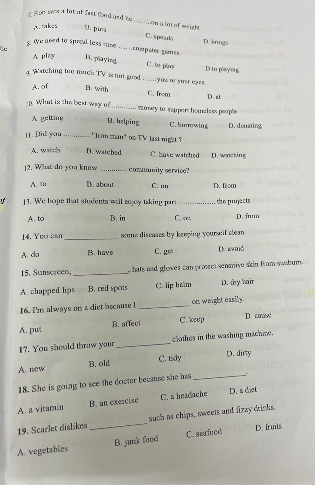 15c ý A,B,D là các vấn đề còn ý C là kem dưỡng môi