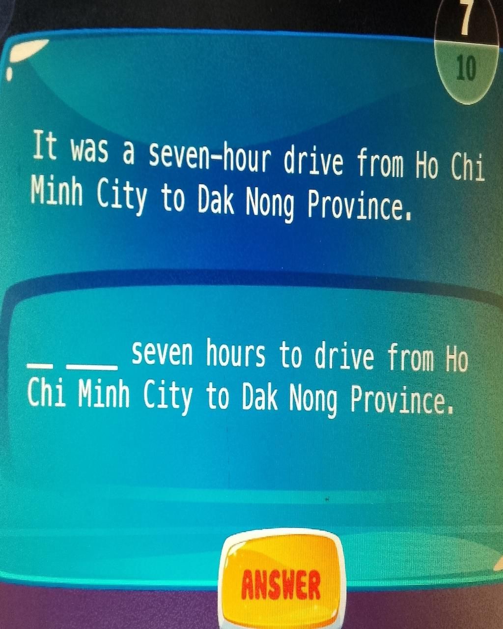 `1,` It took seven hours to drive from Ho Chi Minh City to Dak Nong Province.