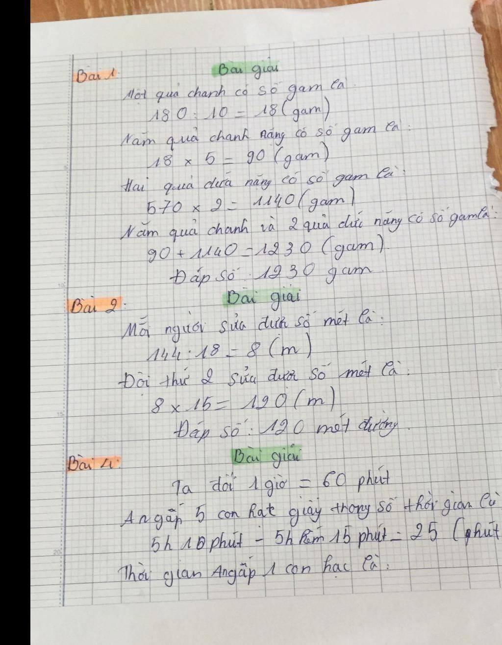 `5` quả chanh nặng số gam là: