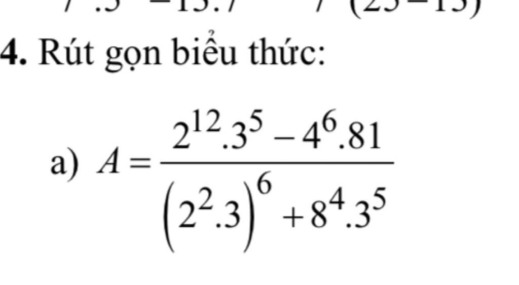 `a)(2^(12).3^5-4^6 .81)/((2^2 .3)^6+8^4 .3^5)`