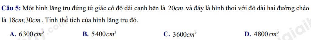 Đáp số : `5400` $\rm{cm^3}$