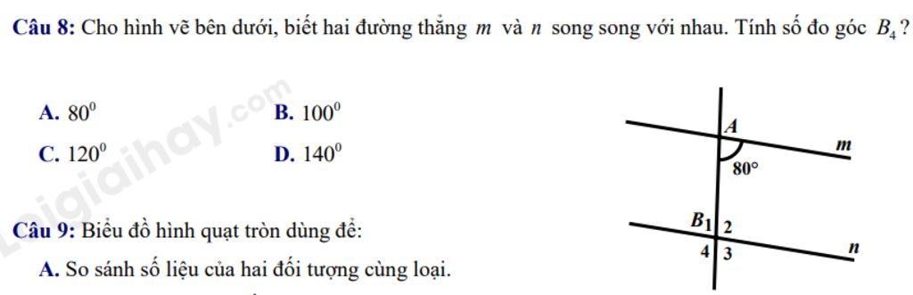`=> \hat{B_2} = 180^o - 80^o = 100^o`