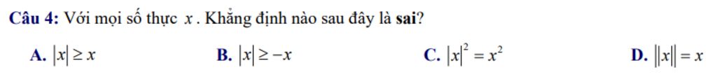 `|x|=x` nên `|x|` không thể bằng `-x`