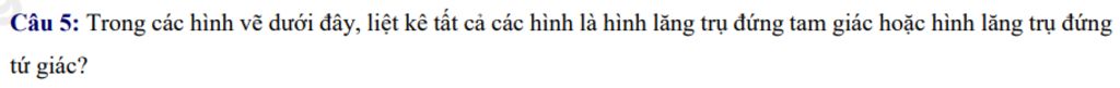`@` Ta thấy tất cả `6` đều là hình lăng trụ đứng tam giác và lăng trụ đứng tứ giác