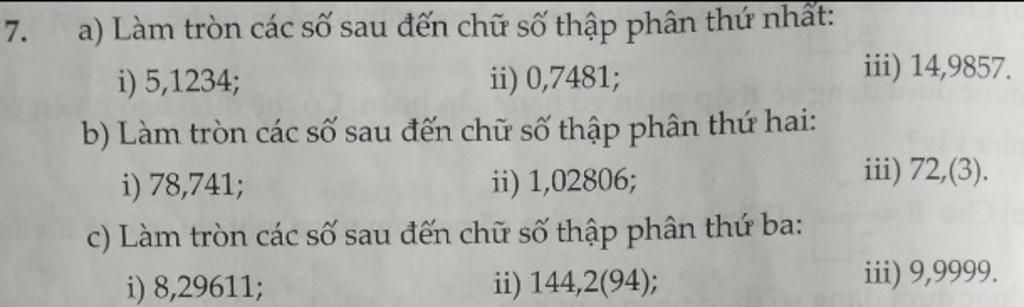 7. a) Làm tròn các số sau đến chữ số thập phân thứ nhất: