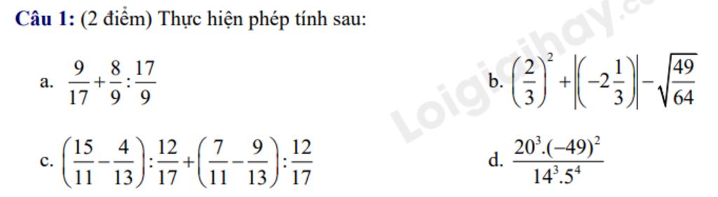 a) $\frac{9}{17}$ + $\frac{8}{9}$ ÷ $\frac{17}{9}$