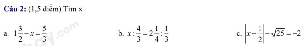 `c . ` `|x-1/2|-\sqrt{25}=-2`