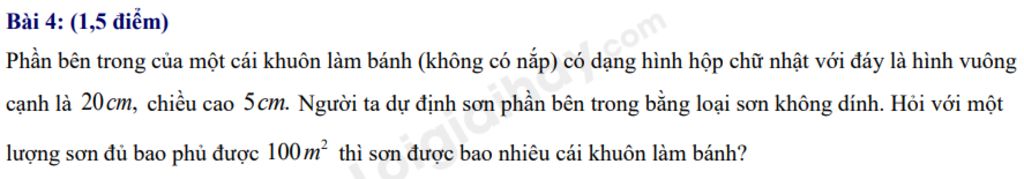 Với lượng sơn bao phủ được `100m^2` thì sơn được số khuôn làm bánh là: