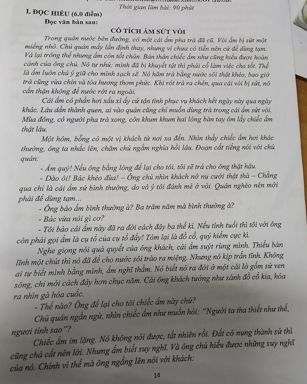 Trong quán nước bên đường, có một cái ấm pha trà đã cũ. Vòi ấm bị sút một