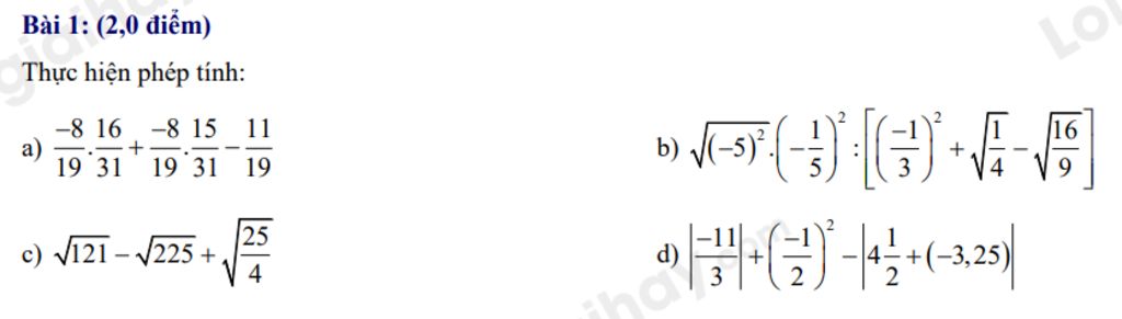 `b)\sqrt{(-5)^2}.(-1/5)^2:[(-1/3)^2+\sqrt{1/4}-\sqrt{16/9}]`