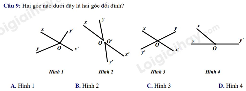 `=>` Hình `3` là hình có hai góc đối đỉnh