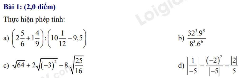 b) `(32^5 . 9^3)/(8^3.6^6)`