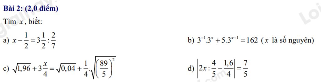 b) `3^(-1) . 3^x + 5 . 3^(x-1) = 162 (x in ZZ)`