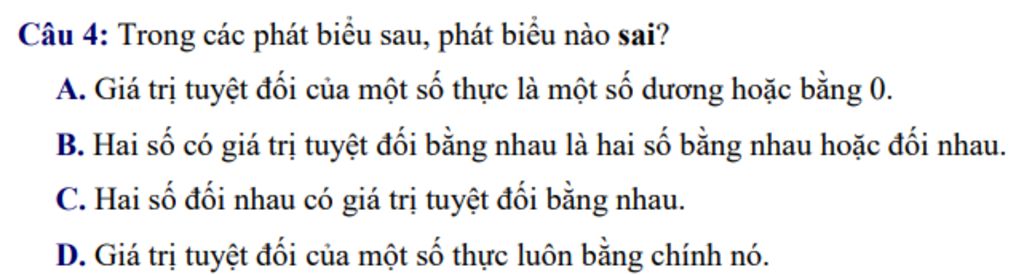 Câu 4: Trong các phát biểu sau, phát biểu nào sai?