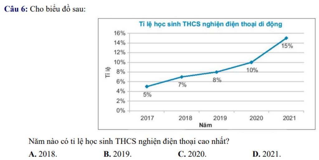 `@` Năm `2021` có tỉ lệ học sinh THCS nghiện điện thoại cao nhất với `15%`
