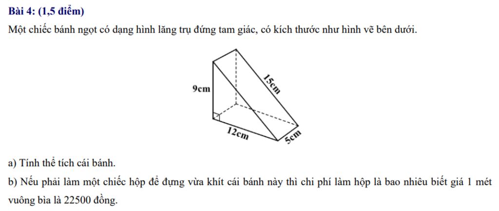 - Nếu phải làm một chiếc hộp để đựng vừa khít cái bánh này thì chi phí làm hộp là: