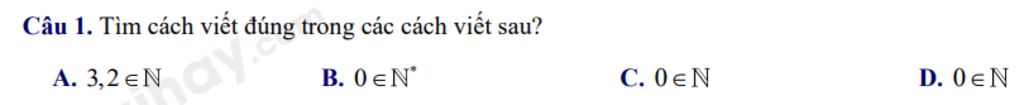 `NN**` là tập hợp các số tự nhiên khác `0`