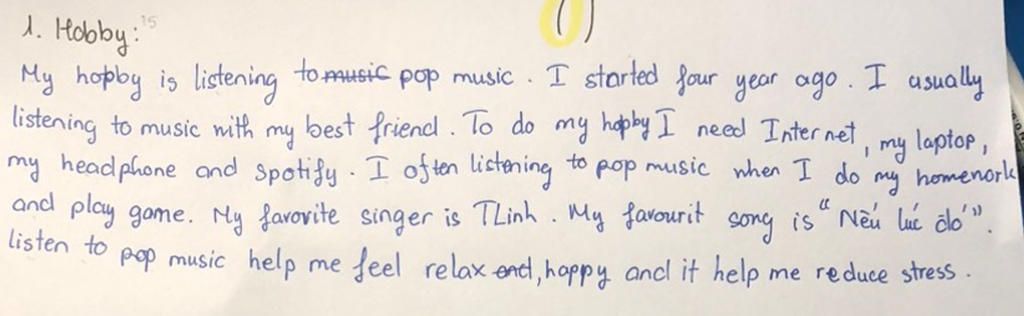 my hobby is listening to pop music. I started four years ago. I usually listening to pop music with my best friend. To do my hobby i need internet, laptop, headphone and spotifi. I often listening to pop music when i do homework or play game. My favourite singer is TLinh. My favourite song is "Neu luc do". Listening to pop music help me feel relax, happy and reduce stress.