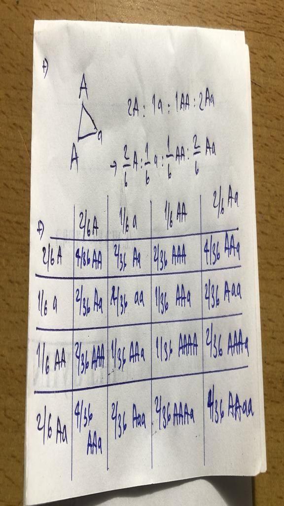 AAa: $\frac{4}{36}$ + $\frac{1}{36}$ + $\frac{1}{36}$ + $\frac{4}{36}$ = $\frac{10}{36}$