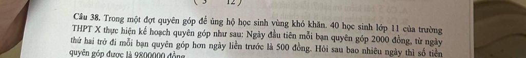 Vậy sau $28$ ngày thì số tiền quyên góp được là $9800000$ đồng