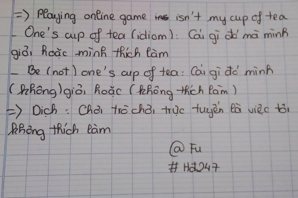 ý mình là mình có thể viết :( playing online game amnot my cup of tea) đc k ạ?