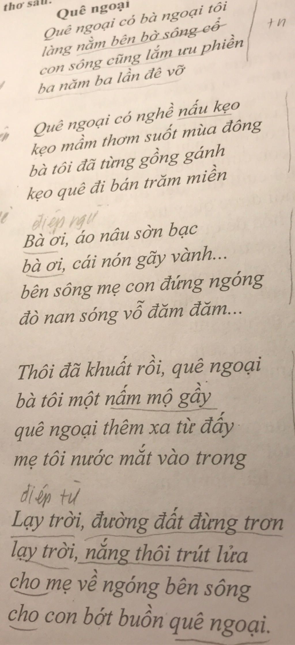 viết một đoạn văn ghi lại cảm xúc của em sau khi đọc bài thơ quê ngoại của Vũ Từ Trang