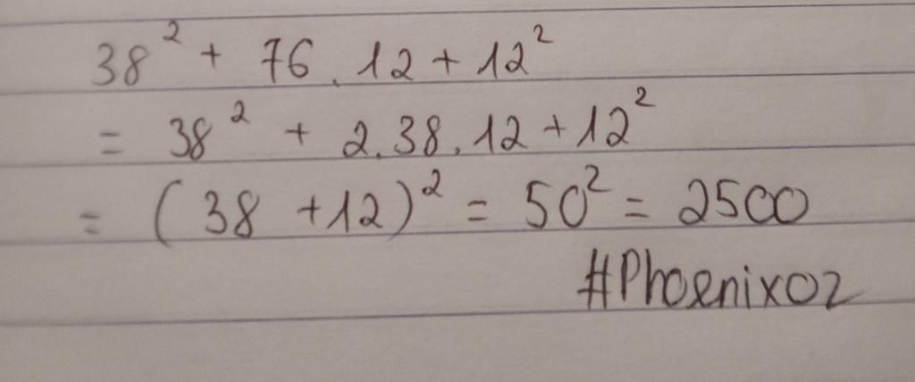 `= 38^2 + 2 . 38 . 12 + 12^2`