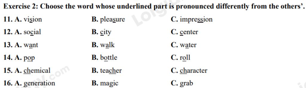 `16.` C ( âm /g/. Còn lại âm /dʒ/ )