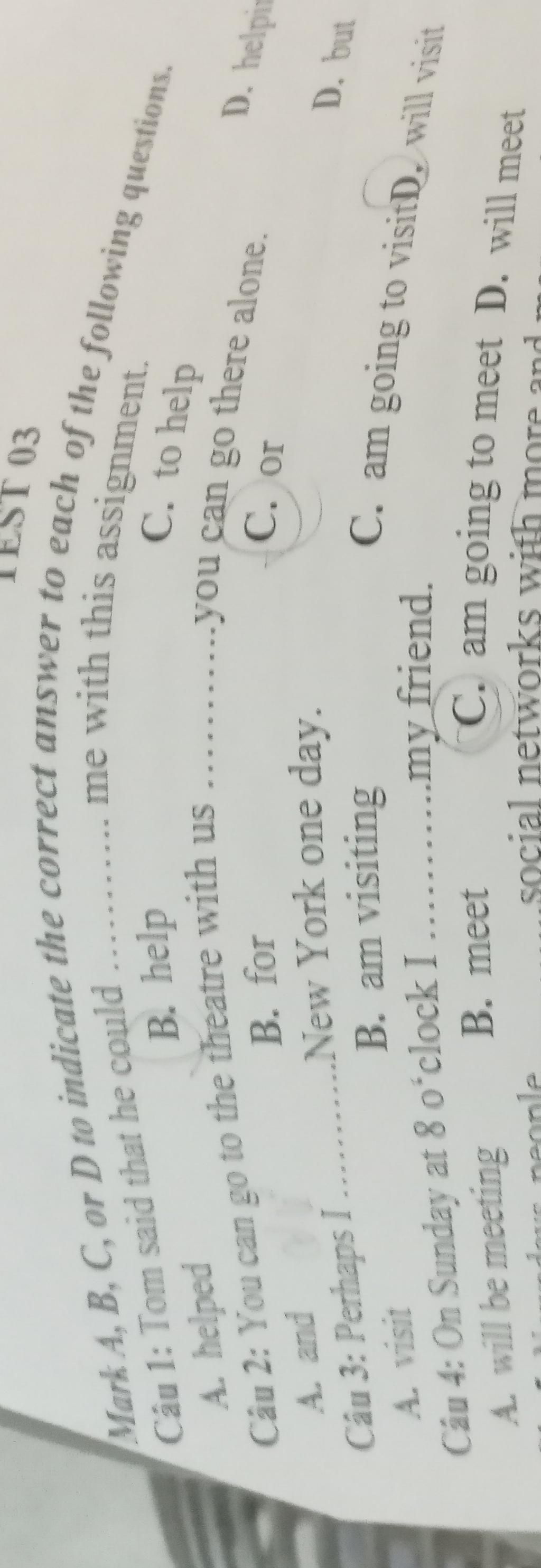 Mark A, B, C, or D to indicate the correct answer to each of the following questions.