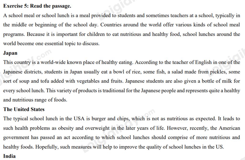 `-` Dẫn chứng "A school meal or school lunch is a meal provided to students and sometimes teachers at a school, typically in the middle or beginning of the school day."
