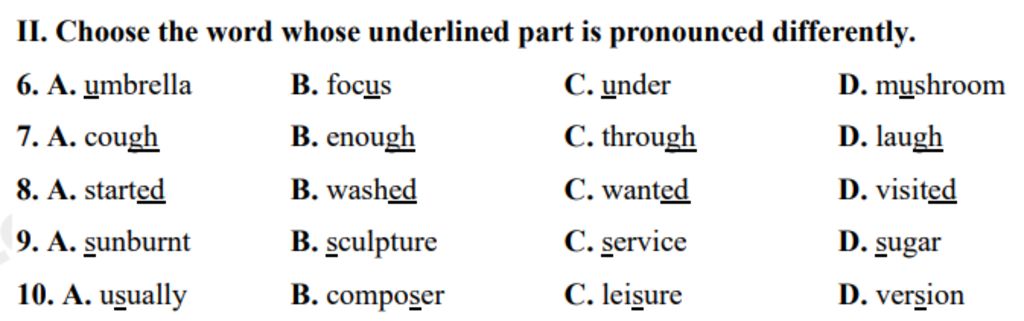 `6.` `B` là âm /ə/, còn lại âm /ʌ/.