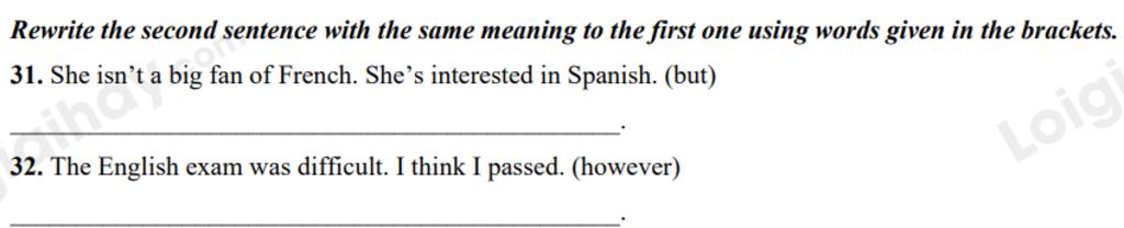 - Tạm dịch: Cô ấy không phải là người yêu thích tiếng Pháp nhưng lại thích tiếng Tây Ban Nha.