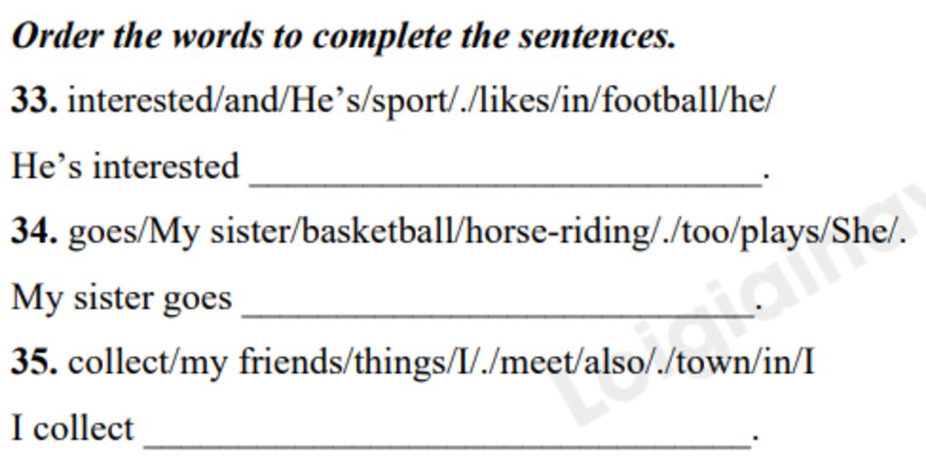 33. interested/and/He’s/sport/./likes/in/football/he/