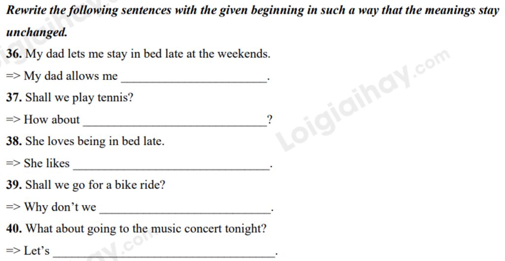 Cấu trúc đề nghị làm việc gì đó: What about + V-ing? = Let’s + V (nguyên thể)
