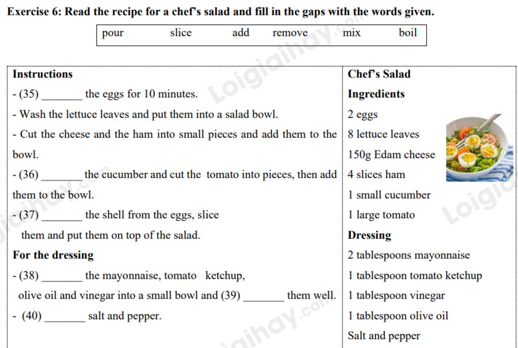 Exercise 6: Read the recipe for a chef's salad and fill in the gaps with the words given.