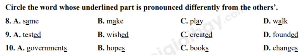 -Các từ có tận cùng là sh(wish) phát âm"ed" là: "t"
