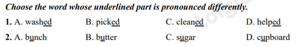 `2,` `C` - Phát âm /ʊ/ còn lại âm /ʌ/