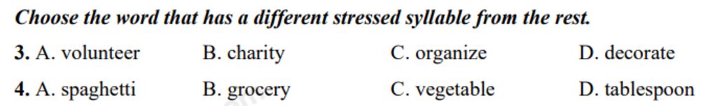4. A. spaghetti B. grocery C. vegetable D. tablespoon