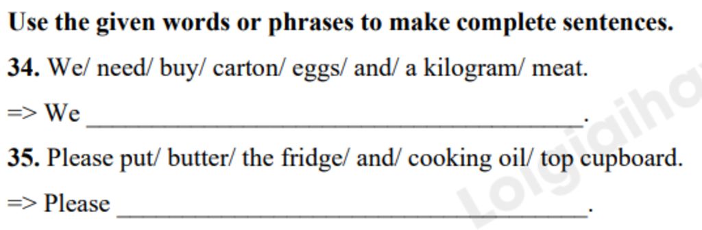 `34.` We need to buy a cartoon of eggs and a kilogram of meat.