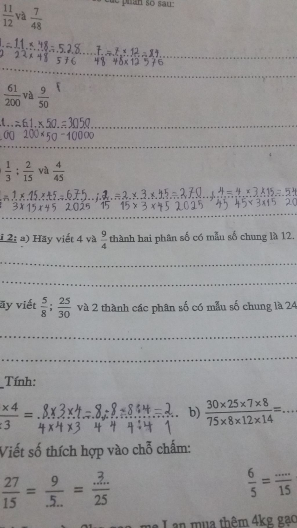 9/4 quy đồng lên được 27/12,4/1 quy đồng lên được 48/12