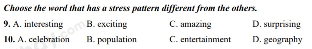 10. A. celebration B. population C. entertainment D. geography