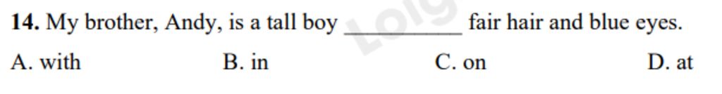 `->` Vì dựa vào nghĩa: Anh trai tôi, Andy, là một cậu bé cao __________ tóc vàng và mắt xanh.