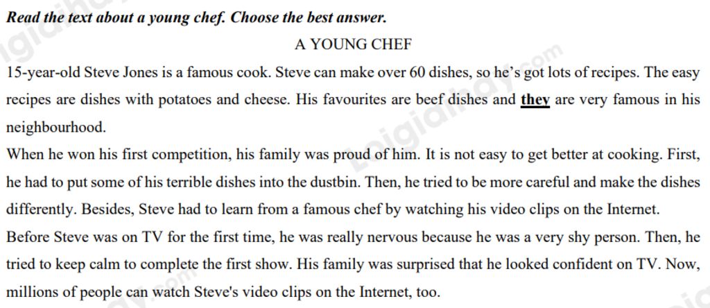 `->` Dẫn chứng: His favourite are beef dishes and they are very famous in his neighbourhood.