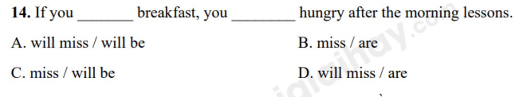 `->` Nếu cậu bỏ lỡ bữa sáng, cậu sẽ đói sau buổi học buổi sáng.