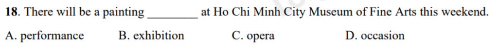 `18.` There will be a painting _____ at Ho Chi Minh City Museum of Fine Arts this weekend`.`