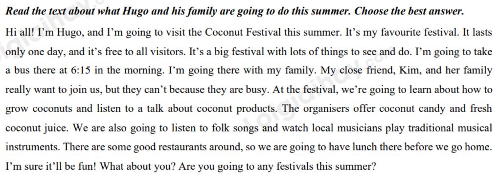 Read the text about what Hugo and his family are going to do this summer. Choose the best answer.